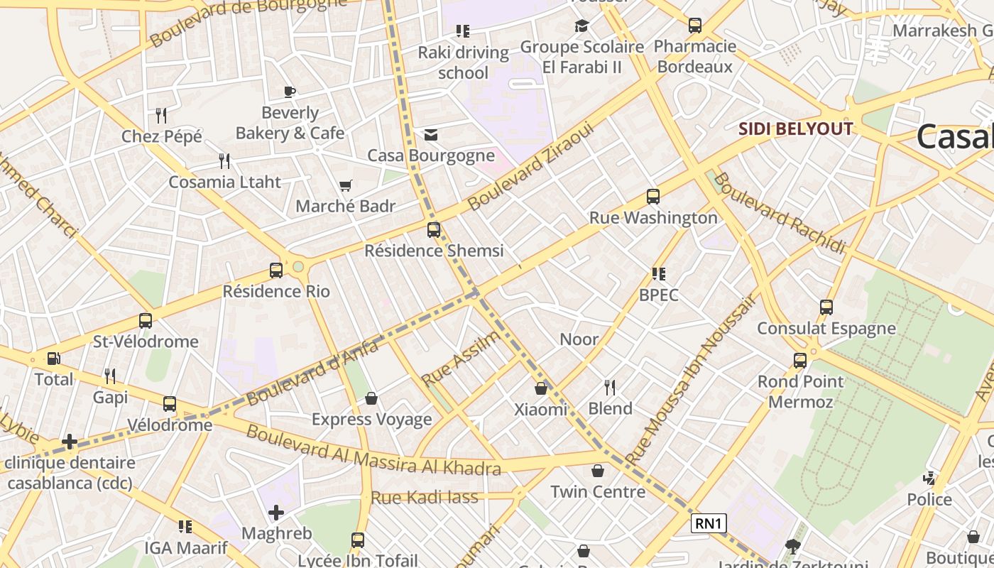 Appartement Casablanca Anfa also features a fully furnished kitchen with facilities. Guests can enjoy French cuisine in Freres Gourmets, situated within minutes of the accommodation. Les Arenes bus stop lies steps away from the apartment.
